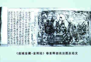 《赵城金藏·金刚经》卷首释迦说法图及经文。