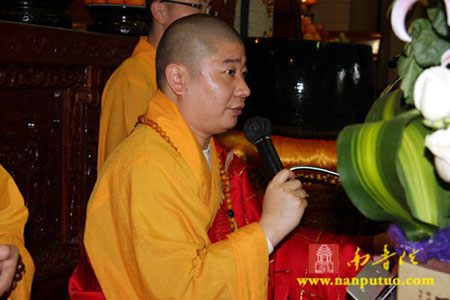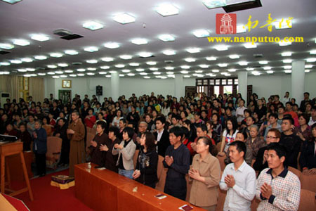 2009年4月13日上午,福建省厦门市南普陀寺举行传授三皈法会,南普陀寺方丈则悟法师为信众传授三皈,三百多位信众参加。