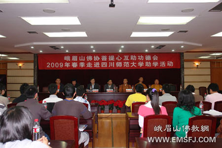 2009年4月13日,四川峨眉山佛教协会菩提心互助功德会举行2009年春季助学活动,分别向走进成都中医药大学、四川师范大学捐赠助学金4.5万元和5.4万元。
