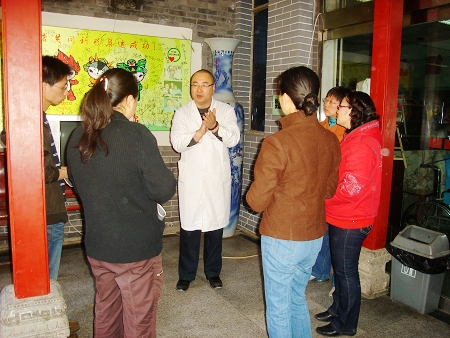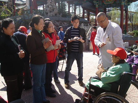 朱院长为志愿者介绍老人的情况及注意事项