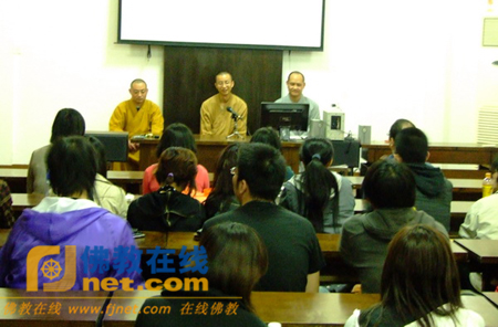 2009年4月11日,上海戏剧学院08编导系一行25人,在方虹教授的带领下到江苏苏州西园寺参访,受到西园寺法师的热情接待。