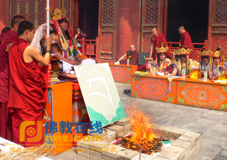 2009年5月25日,河北省承德市普宁寺在大雄宝殿前举办了“大威德金刚火供”法会。法会由普宁寺副住持莫日根图金刚上师主法。法会上,僧众诵经加持,为众生消灾纳福,祈求国泰民安、风调雨顺。法会吸引了周边地区的众居士及信众共随法喜。(图、文:陈志忠)