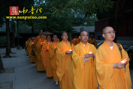 下午,闽院参学团一行分别参观了中国四大书院之一的“嵩阳书院”和道教圣地“中岳庙”。用过晚餐后,在界象法师、少林寺当家师延达法师的主持下,闽院达云法师的策划下,闽院参学团全体学僧和少林寺常住法师及武僧团的武僧们一起举行了“万法归宗”传灯法会。