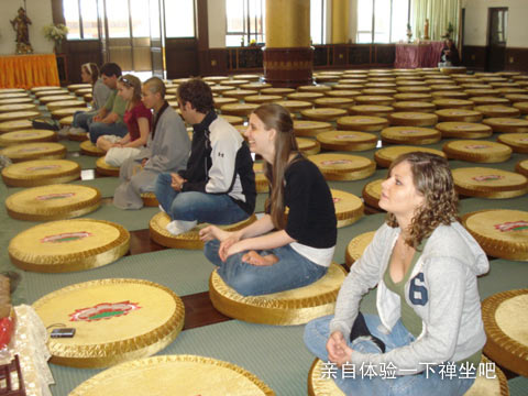 2009年5月25日上午,来自美国的Creighton University(克雷顿大学)、英国的st. Marry College(圣玛丽学院)的大学师生一行21人在翻译的陪同下参访了山西省五台山市台怀镇普寿寺。据悉,此行有3位大学教授、18位大学及专科学生,而其中居然有几位年长的领队,曾在五年前就来过了五台山普寿寺。克雷顿大学建校于1878年,是一所天主教和基督教的综合性大学,位于内布拉斯加州的奥马哈市;而圣玛丽学院是位于英国伦敦西南的草莓山城郊,校址沿泰晤士河畔。