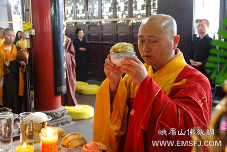 2009年5月28日,农历五月初五,时逢我国传统端午佳节,四川峨眉山报国寺在普贤殿隆重举行普供诸佛大法会。普同供养诸佛海会菩萨,虔诚祈请诸佛龙天庇佑,为众生祈福迎祥、消灾解厄。衷心祝愿国泰民安,世界和平,人民幸福安康!全山200余位法师和数百位信众参加了法会。