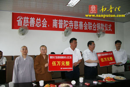 2009年5月20日,福建省厦门市南普陀寺慈善会通灵法师、果瑞法师一行到长汀县濯田镇横田村参加助建该村饮水工程捐赠仪式,并代表南普陀寺慈善会与福建省慈善总会联合助建该村饮水工程10万元善款。