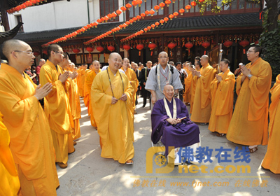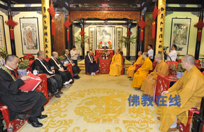 2009年5月22日下午1时许,由日本天台座主半田孝淳长老任名誉团长、延历寺执行武觉超任团长的“天台宗开宗一千二百年庆赞大法会円成奉告世界平和日中友好参拜团”一行15人,在中国佛教协会有关人员陪同下到玉佛寺参访,受到上海市佛教协会会长、玉佛寺方丈觉醒法师的热情接待。