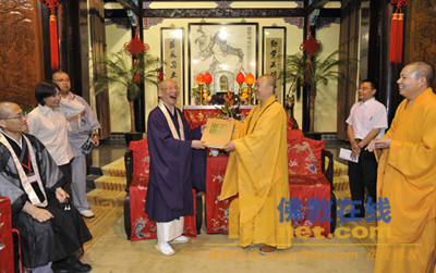 觉醒法师向客人介绍了玉佛寺及上海佛教的近况,盛赞了半田孝淳长老为中日世代友好及两国佛教“黄金纽带”关系作出的重要贡献。