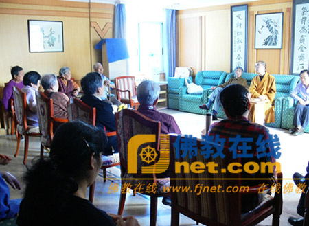 2009年5月9日,重庆华岩寺弘法部来圣法师带领义工们到重庆南坪九九颐园老年公寓,看望入住老人并开示佛法,为老人们带去正信佛教,建立老年公寓念佛小组。
