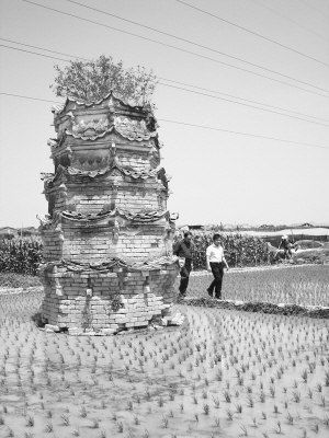 村民陈沈水告诉记者,当时,佛龛里还供奉着一尊菩萨,后来不知去向,他还说,砖塔原有3座,呈三角形状分布,相距约15米,另外两座已经遭到破坏。