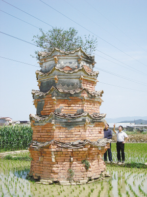 翔安元代古砖塔浸泡在水田 专家呼吁加以保护