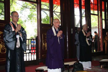 据了解,日本天台座主半田孝淳长老一行到北京后,首先拜访了赵朴初老遗孀陈邦织女士。在参访中佛协后,半田孝淳长老一行还将前往天台山,参拜天台山智者塔院、真觉寺等处,并赴宁波参观遣唐使登陆地——三江口,最后将赴上海拜访上海玉佛寺。