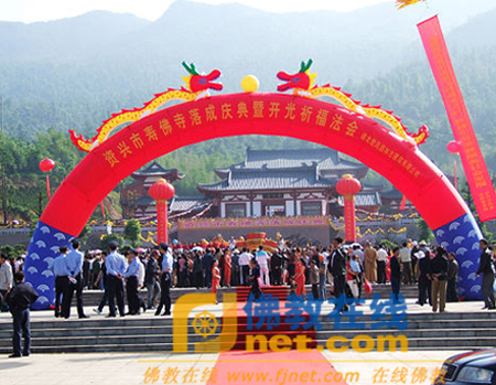 湖南省宗教局副局长向茂林,郴州市委常委、统战部部长钟本强,郴州市委常委、资兴市委书记李评,郴州市民族宗教事务局局长田世雄等领导参加了寿佛寺的落成庆典。
