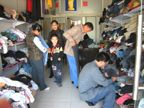 婆婆就住在附近坡上不远的小平房里,经常从这里过,看到人们到这儿挑选衣服拿回家去。她家也很困难,所以,也过来取衣服了。