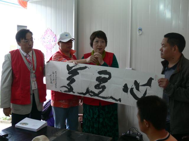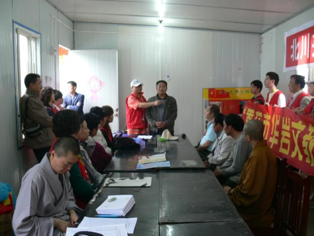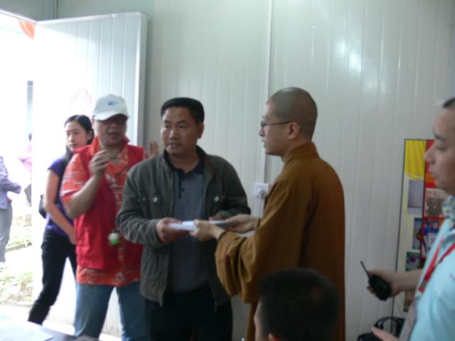 (中国佛网讯)5月6日下午重庆市华岩文教基金会组织的“5.12汶川大地震一周年送温暖活动到达北川安县漩萍乡受灾群众安置点,海内外爱心大使们冒着大雨看望了安置点的孤老们,并为他们送去了慰问金。