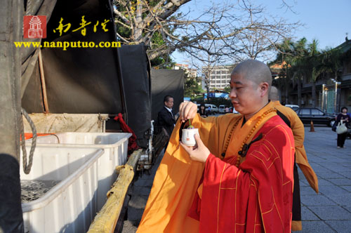 5月2日,农历四月初八,恭逢释迦牟尼佛圣诞日,南普陀寺在天王殿前举行了简短而又庄严的放生法会,礼请方丈则悟大和尚主法,本寺僧众、护法居士以及过往香客随喜参加。愿佛慈力,令此类众生,放生以后,获尽天年,随缘往生。并愿放生功德皆悉回向,尽法界、虚空界一切众生常得安乐,永离诸苦。