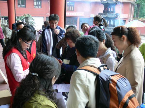 中国佛网讯:2009年05月01日 重庆市华岩寺为期三天的第七届丛林生活体验营正式开始。上午,来自四面八方的营员们陆续前来报到,接待、发放营服,安排住宿,华岩义工们忙碌着。。。。下午,华岩寺来圣法师、义悲法师、普济法师与七十余名营员举行见面会,由来圣法师主持。法师们要求大家抛开世俗的烦琐之事,一心体验中国传统的礼仪与严格的僧团生活,并为营员教导了佛教礼仪,过堂注意事项等。晚上8点30营员们体验禅修入门,来圣法师讲解了禅修知识。营员们表示,他们非常珍惜这次难得的机会,学习中国传统文化,用自己的心去感受佛法的真谛。