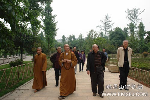 5月6日,原四川省副省长刘昌杰、原省林业厅厅长傅道政、原省水电厅厅长陈德静、原乐山市委书记杨家全以及原宜宾市、内江市、泸州市、雅安市市委书记等省市老领导一行20余人来到峨眉山大佛禅院参观、访问,调研峨眉山佛教文化建设情况。