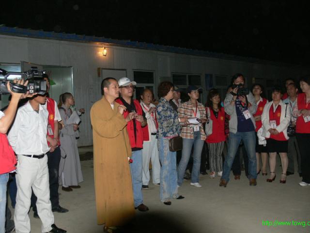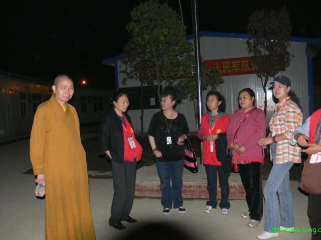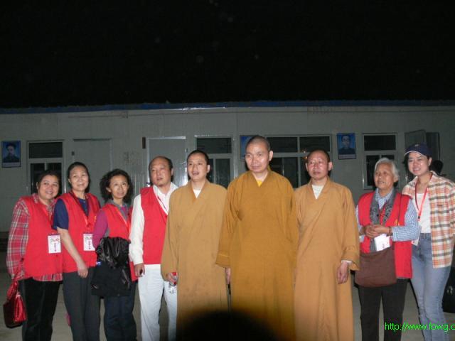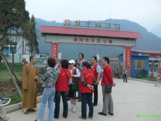 (中国佛网讯)重庆市华岩文教基金会组织的“5.12汶川大地震一周年送温暖活动”原本定于5月5号下午4:30到达北川擂鼓中学,因为部分人员走错道路、掉队等原因,直到晚7:30,一行爱心大使们才在重庆市佛教协会副会长、重庆市华岩寺方丈、重庆市华岩文教基金会理事长道坚法师、成都昭觉寺的智僧法师、寂运法师的带领下到达擂鼓中学。