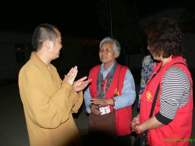 成都昭觉寺的智僧法师、寂运法师带领成都居士等待学生们放学