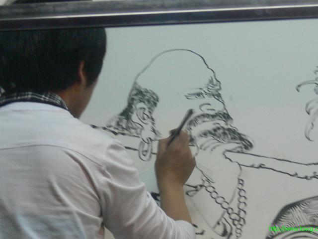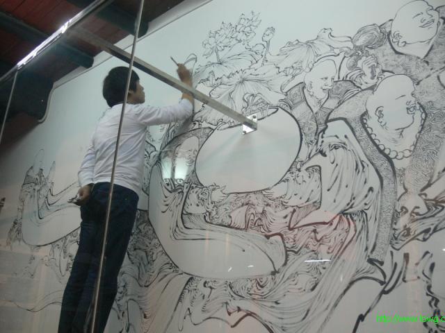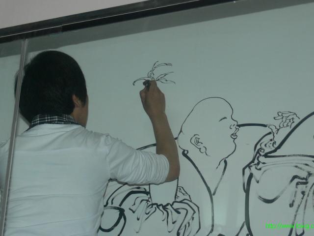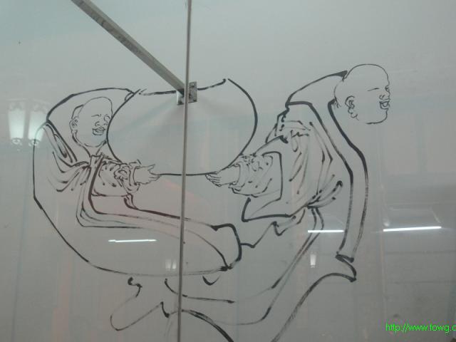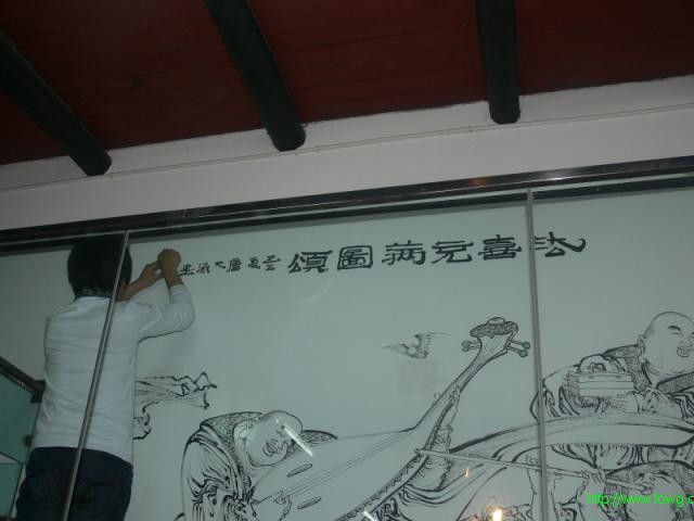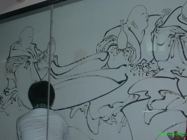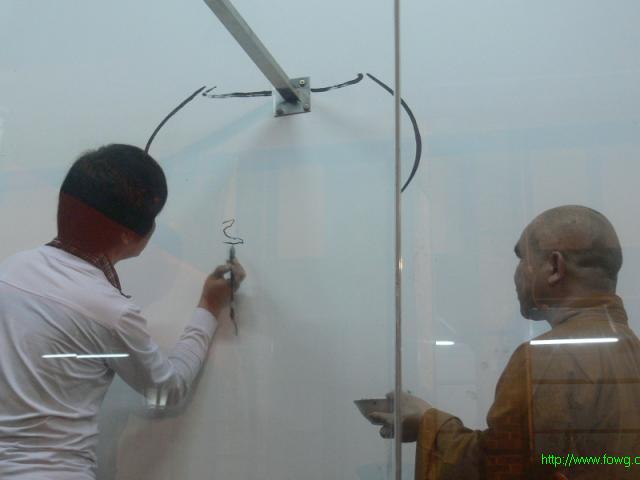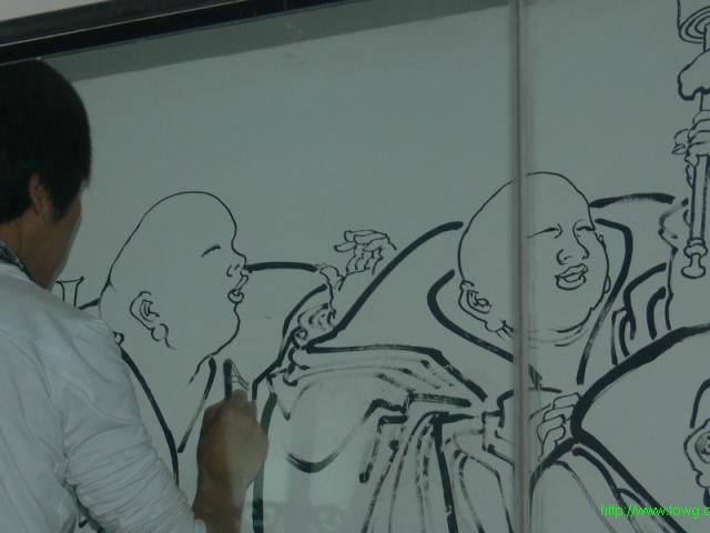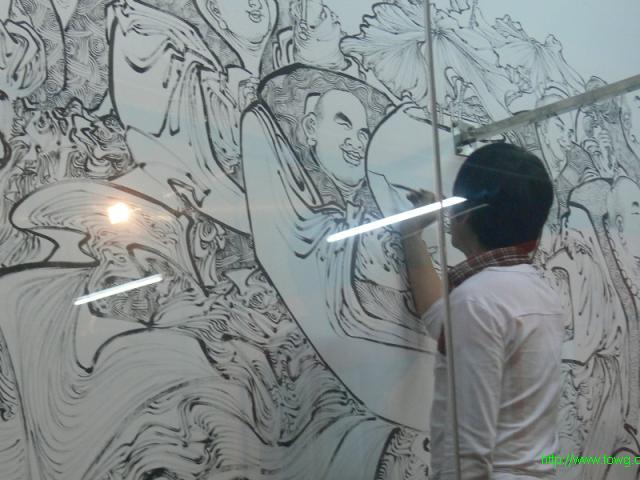 (中国佛网讯)5月27日,中国国家画院中心部主任,上海虹桥画院院长唐天源先生,于重庆华岩寺佛教博物馆完成大型佛教壁画创作《法喜充满图颂》、《世间和谐图颂》。与此同时,原重庆市委宣传部副部长、常务副部长刘庆渝在博物馆墙壁书写《心经》。