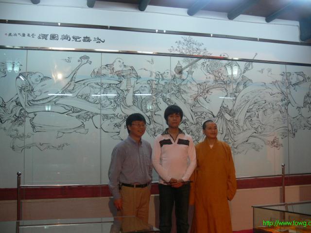 在道坚法师的 带领下,参观重庆华岩寺艺术馆