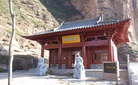 从下寺再沿着沐沐流淌的小溪行进,一路上溪水潺潺,清风拂面,悬崖上多是山花野草,有时峡谷荫天蔽日,有时蓝天白云呈现,似有山羊咩叫,又有鸟鸣喧幽。我们踏沙涉水,入进5华里,便到了曲径幽深的炳灵上寺。上寺坐落在大寺沟内,四面环山,别有洞天。因为这里很少有游人步至,因此当我们到时,受到了几位和尚的殷切相待。布施后,一位姓潘的和尚,给我们介绍了寺中的情况。寺内有大佛洞,始建于隋代,内雕塑有一尊4米高的弥勒佛像,神采丰满,不愧是隋代造像遗风。明万里年间,这里曾建立密宗院,清康熙年间又修建了藏经楼文殊殿、护法堂、十六尊教堂、尊音神堂等。清康熙二十二年(公元1683年),该寺嘉杨隆珠活佛被敕封为护法禅师“呼图克图“称号,是康熙册封的18个活佛之一。卓玛殿始建于明万里年间,因兵乱屡毁屡建,现内塑有绿度母塑像、二十度母为外围,布达拉山为背光,神采奕奕,为艺术珍品。还存有清康熙二十二年(公元1683年)刊印的大藏经一部60余卷,是佛教经典之精品。寺内现存的唐卡画、千手千眼观音、坛城图、文殊菩萨等画卷,制作精美,色泽绚丽,具有浓郁的宗教色彩和独特的艺术风格。其中绿度母唐卡画系九世班禅所赠。整个上寺环境优美,四周林木葱茏,鸟语花香。每年四月十五,五月五,游人、焚香者从四面八方簇来,是佛教活动胜地之一。