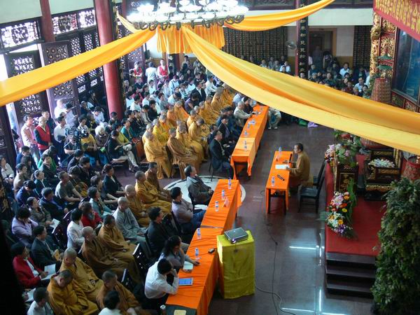 中国佛网讯 2009年5月2日(农历四月初八)喜逢释迦牟尼佛诞辰日。为庆祝释迦牟尼佛圣诞,重庆佛学院与重庆中华传统文化研究会在这殊胜的日子里,联合举办了《佛家哲学思想与构建和谐社会》学术讲座,由重庆中华传统研究会秘书长唐良富先生主持。两千九百五十八年前这一天,人类社会诞生了一位伟大的智者、伟大的哲学家释迦牟尼,如同一颗明星划过长空,照亮宇宙;两千九百五十八年后的这一天,我们聚首在华岩寺弘法堂,纪念这位圣人。