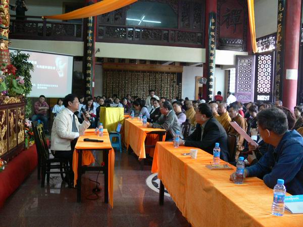 叶贵本在讲座上讲到,和谐是一个古老而永恒的话题,中央提出构建和谐社会,和谐成为全国主导观念与意识,实现和谐社会任重道远,从传统文化的角度来看,佛教是最具备和谐韵味的。宗教之和显而易见。道家讲天地之和,儒家讲人能之和,佛家讲众生之和,和文化是中国传统文化的精华。叶贵本先生最后地说,我们研究佛学可以改变生命的方向,改善生命的质量,提升生命的本质。