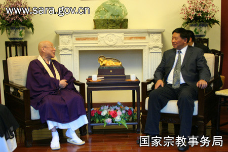 2009年5月18日,国家宗教事务局叶小文局长在京会见了由日本佛教天台宗天台座主半田孝淳率领的天台宗代表团一行。