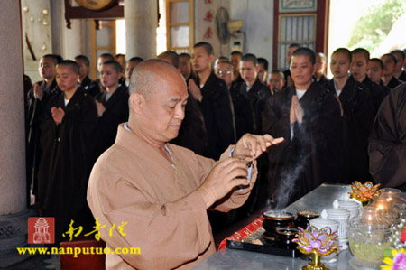 广声法师带领新加坡护法善信孙淑琴、张子英居士一行,在厦门佛协办公室主任李建群、虎溪岩寺监院净心法师等陪同下到福建省厦门市万石莲寺礼祖。万石莲寺住持法源法师率监院向佛法师、及两序大众列队至山门迎接。中午,万石莲寺精心准备午膳斋宴广声法师一行。
