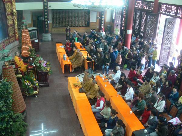 道坚法师凭着自身良好的佛教素养和谦恭的家风为参学团的法师和居士们作了精采的开示,用一些诙谐幽默的故事,为大家指点解惑。并希望以后能多多来往,互相学习交流,促进佛教的弘扬与发展。
