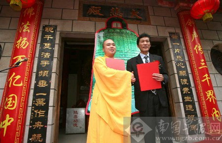 5月2日,是释迦牟尼佛圣诞日。当天上午,柳州市西来寺锣鼓欢腾,该寺铸造世界第一大佛钟签约仪式如期举行。据了解,拟造的佛钟设计直径6米,高9米,重达109吨,钟上将刻万尊佛名,又称“万佛名钟”。据悉,佛钟铸造成后,将安置在西来寺前门侧。(图、文:卿要林)