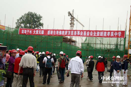 2009年5月6日下午,两岸媒体联合采访团到四川省德阳市,采访台湾佛教慈济慈善事业基金会援建项目――孝泉中学的施工情况。