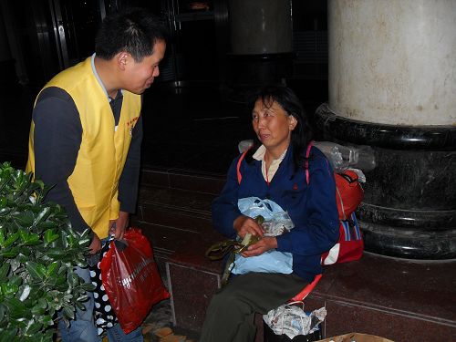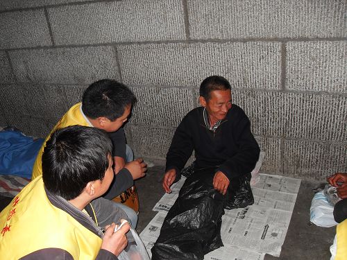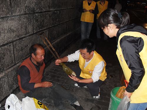 东林慈善功德会志愿者端午节为流浪者送衣送粽