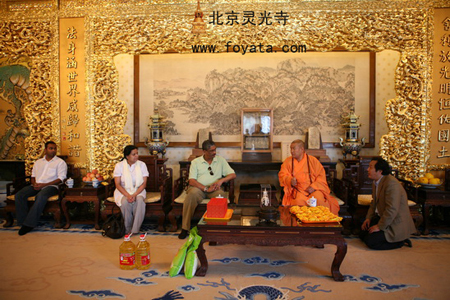 2009年5月12日,斯里兰卡陆军司令一行到北京灵光寺参拜佛牙舍利,受到灵光寺方丈常藏法师的热情接待。常藏法师与陆军司令一行进行了座谈,并向陆军司令赠送了纪念品。
