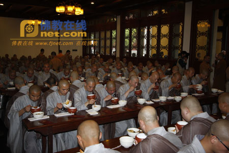 过堂后杭州市佛教协会会长光泉法师为大家开示