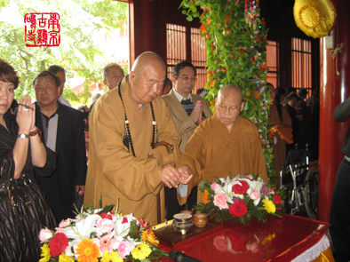2009年5月1日上午10点,佛光山开山宗长星云法师及佛光教育院院长慈容法师一行到南京古鸡鸣寺参访,受到了古鸡鸣寺四众弟子的热烈欢迎。