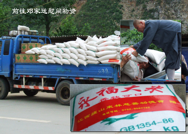 于四川慰问期间,无论在塔水板房,还是永兴板房,东林慈善慰问团的全体成员都秉承着东林慈善"不为自己求安乐,但愿众生得离苦"的精神扶危济困。在伸出关爱之手的同时,也得到当地民众的帮助。很多老乡为慰问团送来吃的,后勤组里的大唐小唐居士、任居士,及后来的龙居士,为慰问团的一日三餐尽心竭力,每天工作近20个小时。