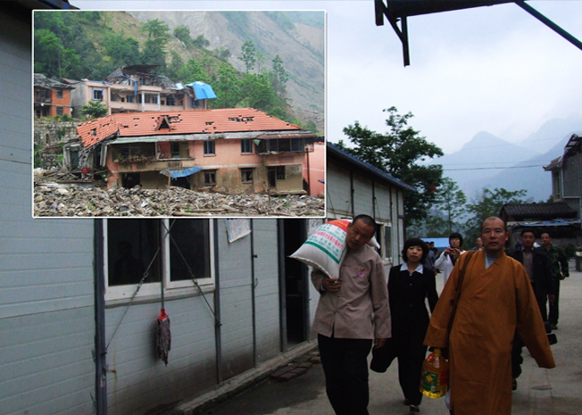 5月5日,东林慈善功德会第三次赴川慰问团在镜义法师的带领下,结束了在北川县曲山镇永兴板房区的工作。虽然做了大量工作,为灾区人民义诊,送去慰问物资,给予精神和物质的双重关怀,但作为佛弟子,慰问团的成员们仍然无法释怀。北川的漫天乌云,遍地瓦砾,满目凄楚疮痍,无不示现着生之欢愉的稍纵即逝。千呼万唤,终无法挽回亲人的生命,无常,当然不是一场噩梦,宇宙以各样方便向人类示现无常的残酷。5。12,不仅是四川人民的灾难,也不仅是中国的灾难,更是生命共同的劫数。曾经的峰峦被夷为平地,村庄被泥石流掩埋,热闹繁荣的小县城坍塌成一座死寂的废墟,再无欢歌笑语,再无孩子们纯真的笑声。面对无情的灾难,反而思之,世间诸苦何尝不是时时以各种形式捆缚、烦扰着我们的身心,无常原本法尔如是, 若不善加珍惜、勤以修法,则当“无量诸佛之手亦无法遮止”的业果现前时,吾等将何以堪?