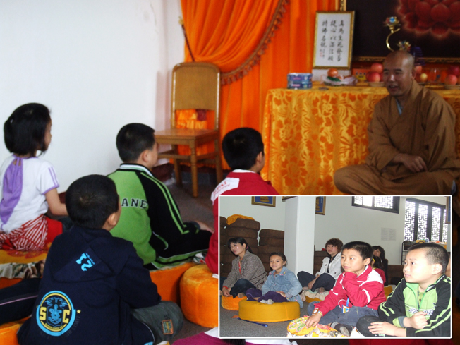 应绵阳国学班邀请,5月1日,在圣水寺念佛堂,镜义法师为学生及家长开示——父母与子女是在因缘具足下聚合,子女由父母缘而来,但非为父母而生,乃自心变现所感,但要惜缘,应有共同的责任去协助家庭成员建立正确的人生观,互助互爱之下为幸福家庭铺路。