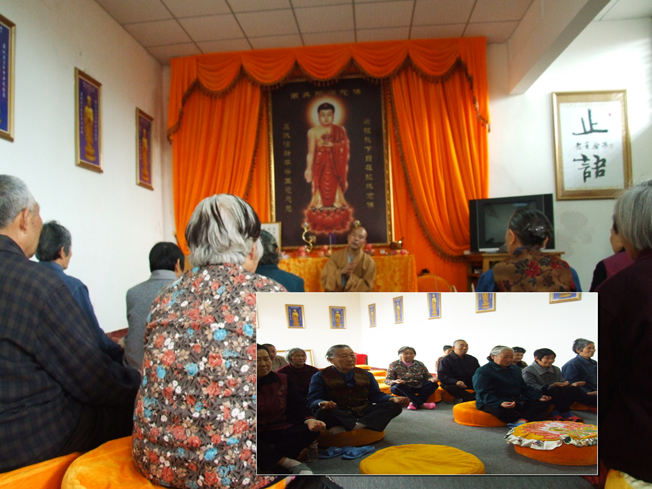 5。12地震损失惨重,无数生命遇难,生还者中诸多善男信女因念佛感应避过此劫。5月1日下午,镜义师请来几位念佛人详谈。