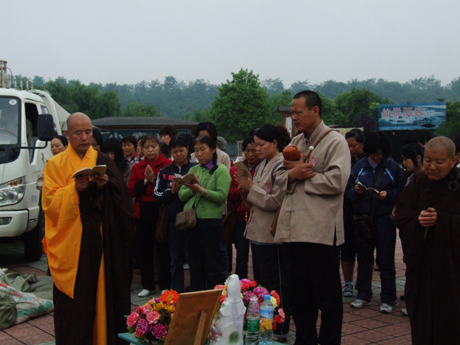 5月5日东林慈善赴川慰问团连同当地志愿者及发心居士,到仙海水利风景区放生: 放生款约三万。仪式由镜义法师主持,回向受灾大众:愿逝者得脱三途,往生净土,永享极乐;愿生者善缘成熟,信受佛法,成佛度众。