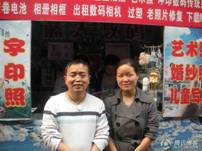 曾永川和他妻子小胖在自家像馆前。