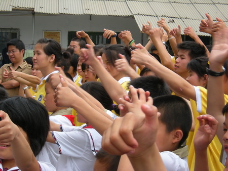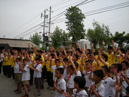孩子们伸出林立的双臂,表达感恩的情怀。
