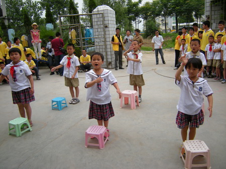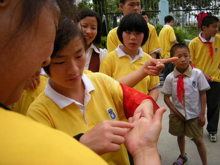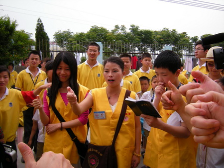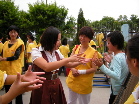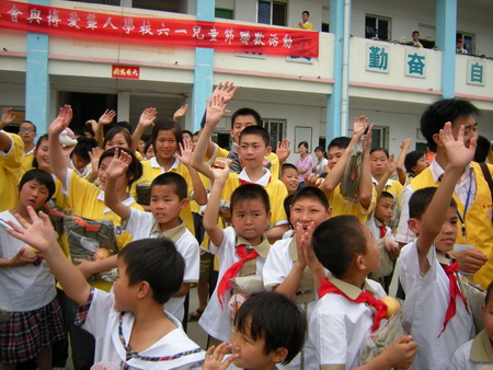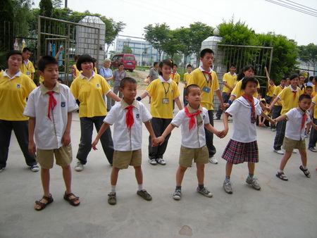 志愿者的黄马甲和孩子们的黄色校服水乳交融,如同大家浓浓的情谊。刚踏进博爱聋人学校的校门,志愿者们就遇到孩子们的夹道欢迎。一个个纯真的面庞,洋溢着真诚和热切。
