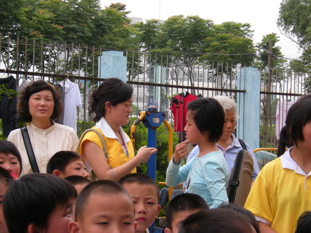 这个志愿者刘阿姨是个做善事的有心人,早在去年她就通过网络自学了手语,专为今天派上用场。志愿者们现场向她学习手语“你好”、“你几岁了”等。