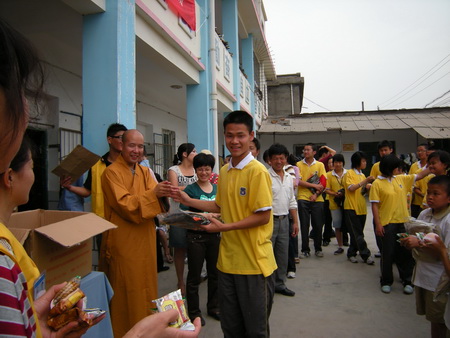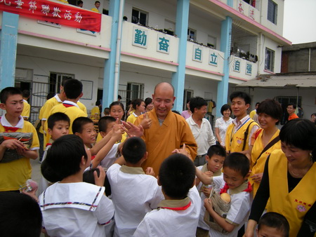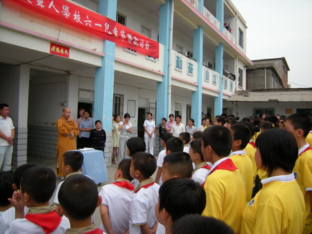 联欢会开始了,东林慈善功德会会长镜义法师首先做了简短开示。他勉励孩子们把社会给与的关爱当作火种,引发慈爱之心,做品学兼优的好学生,将来成为社会的有用人才。