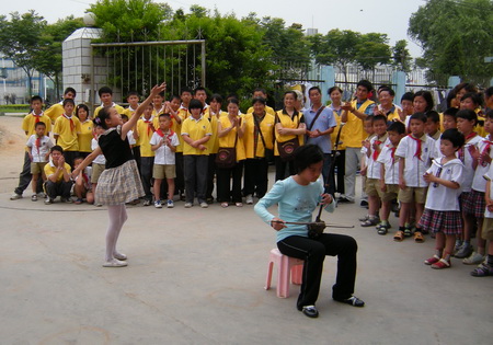 联欢节目随后推出。志愿者的节目和学校孩子们的节目交叉进行,丰富有趣,观看的孩子们乐开了怀。