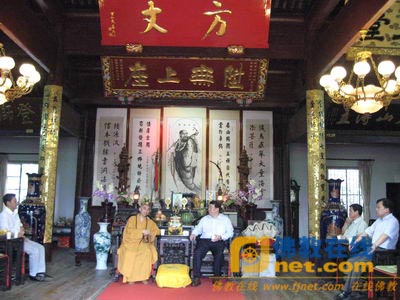诚信法师先陪同龚正副省长一行参观了天王殿、佛殿等寺院建筑,然后,双方在大鉴堂进行了座谈。诚信法师向龚正副省长介绍了天童寺以及宁波佛教的历史,并就近年来宁波佛教文化事业发展的业绩作了汇报,龚省长对天童寺所取得的成绩表示肯定,勉励佛教弟子共同努力,把寺院管理得更好。随后,龚正副省长又到宁波阿育王、七塔寺等地视察。